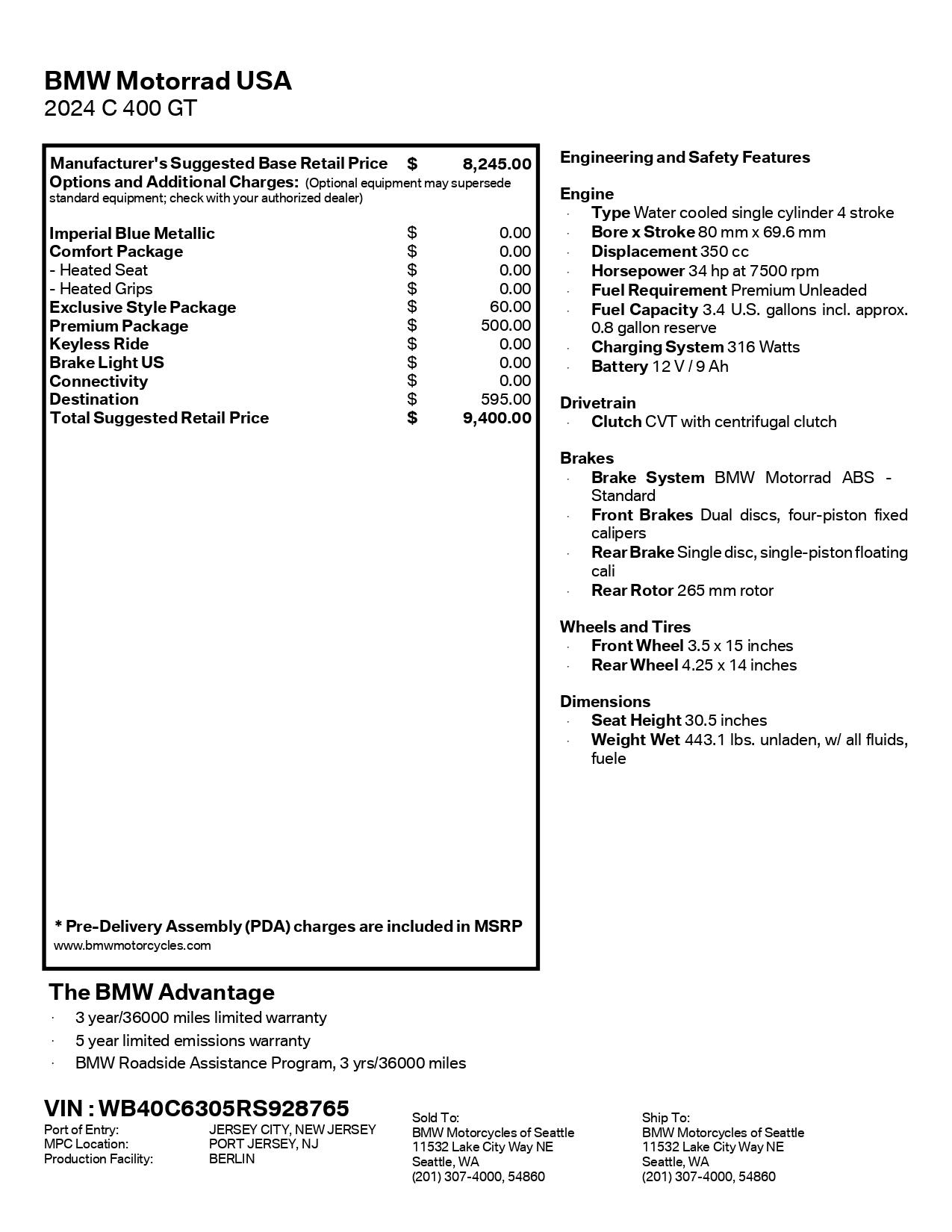 *A documentation fee of up to $200 may be added to the total cost. Prices subject to change without notice.