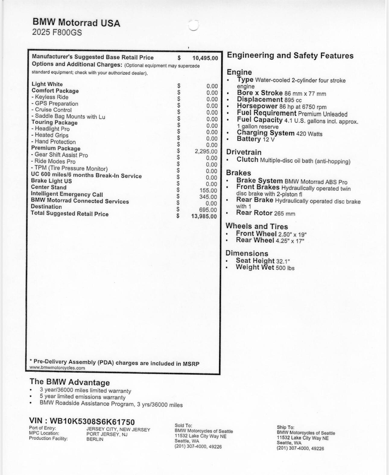 *A documentation fee of up to $200 may be added to the total cost. Prices subject to change without notice.