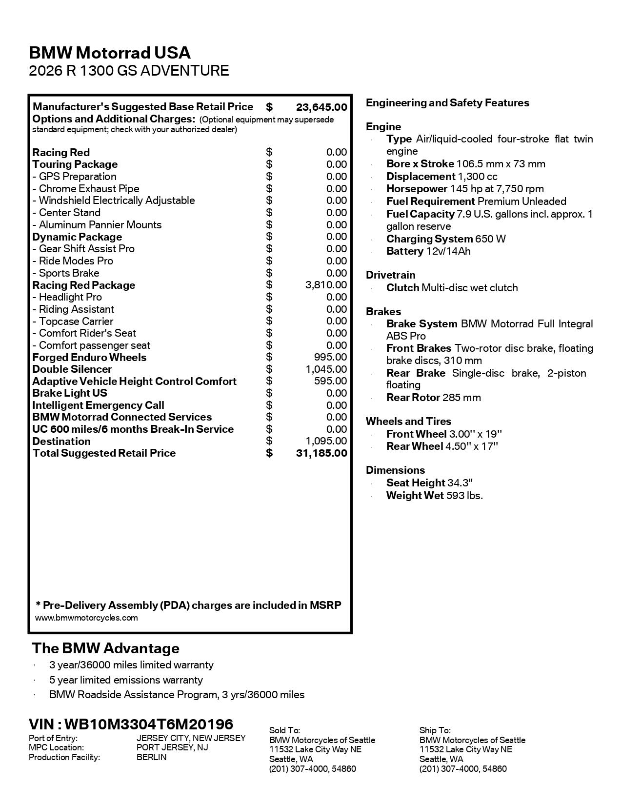 *A documentation fee of up to $200 may be added to the total cost. Prices subject to change without notice.