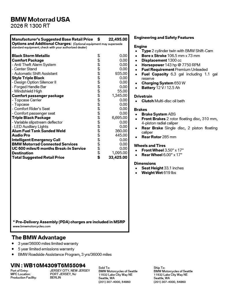 The BMW R 1300 RT is your shortcut to the ultimate touring experience. With its carefully selected equipment for comfort and technology, you are in control – for a top-class experience on long-distance trips. Its powerful boxer engine and 110 lb-ft of torque mean that you and your passenger can enjoy dynamic tours. The visual levity of the design gives the bike a particularly vivacious aesthetic. In short: With this RT, you can make the most of every minute of your journey.